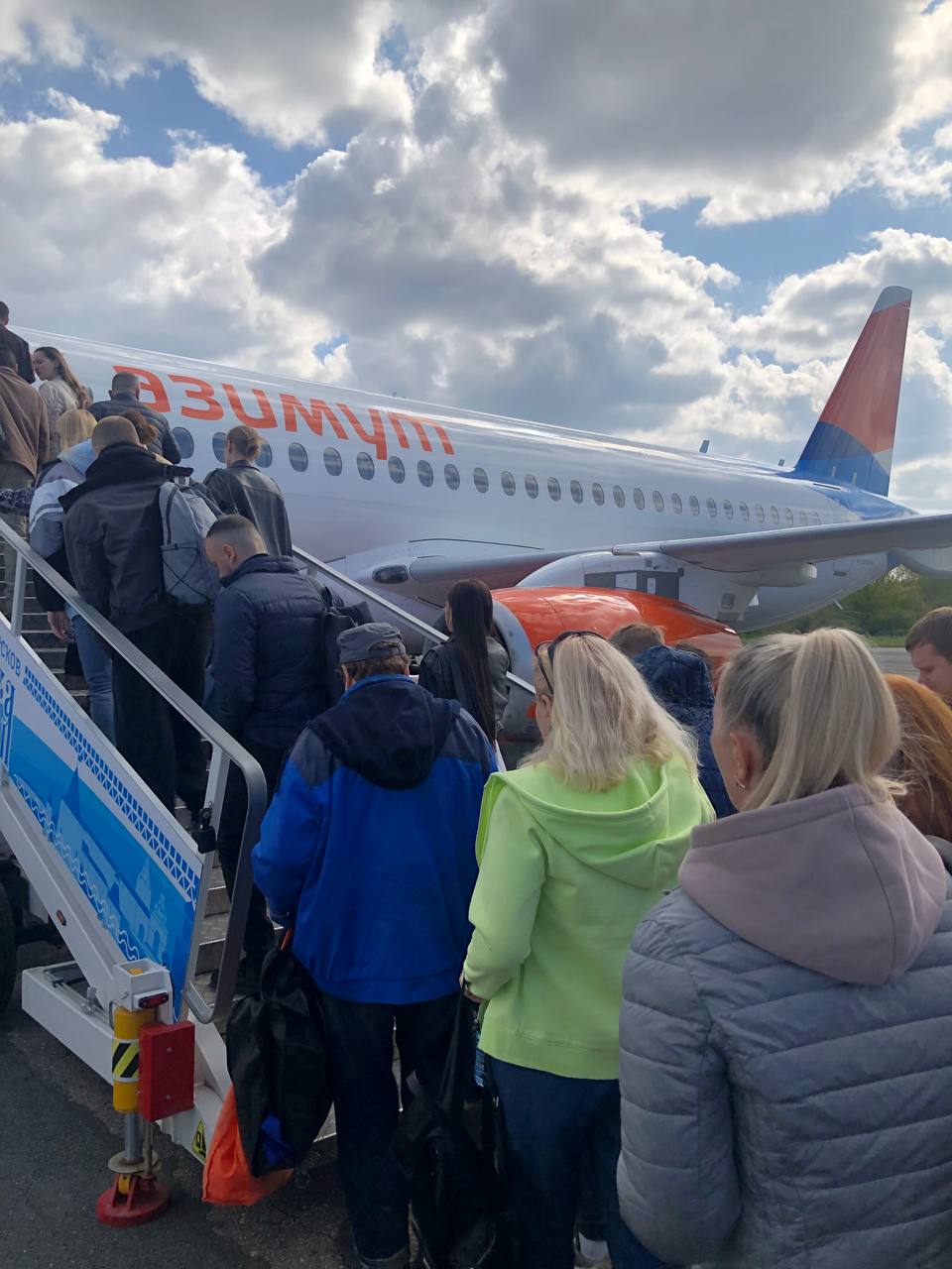 И вот сажусь на обратный самолёт в Москву в аэропорту Пскова. И что же я вижу? Тот самый крестопад на благословенной псковской земле, где только что говорили о важности истории. Автобус, который подвозит пассажиров к трапу - изображения храмов без крестов. Это оскорбление чувств верующих, УК РФ Статья 148, нарушение права на свободу совести и вероисповеданий.