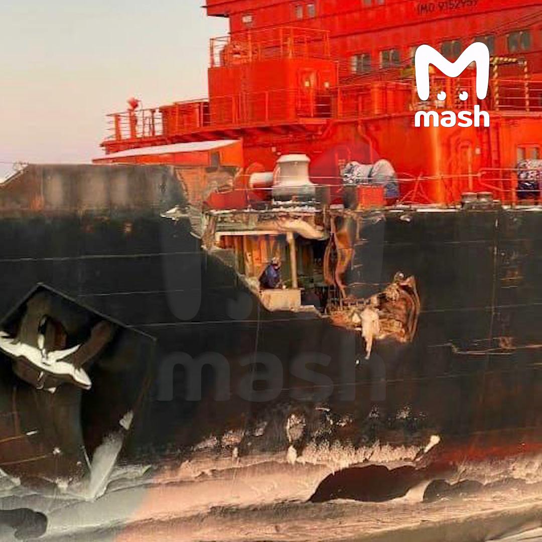 Атомный ледокол "50 лет Победы" и сухогруз Yamal krechet столкнулись в Карском море. На кадрах — момент и первые кадры ледокола после аварии.