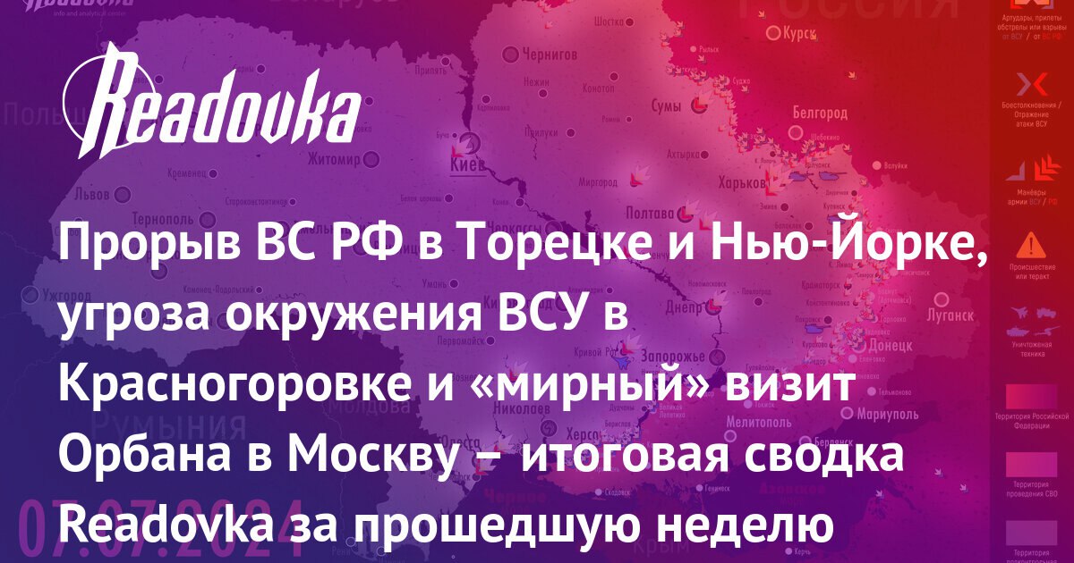 Прорыв ВС РФ в Торецке и Нью-Йорке, угроза окружения ВСУ в Красногоровке и «мирный» визит Орбана в Москву – итоговая сводка Readovka за прошедшую неделю