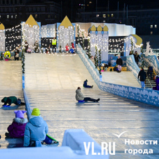 Горка в новогоднем городке на центральной площади Владивостока в понедельник, 30 декабря, будет работать только три часа. После этого она откроется утром 31 декабря.