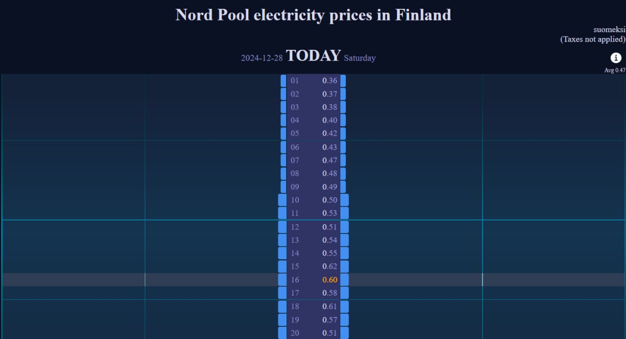 Цены на электроэнергию в Финляндии и Эстонии. Сегодня