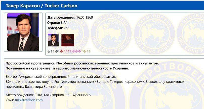 Раньше всех. Ну почти.2 года назадВидео по теме ФОТО ⚡️Американский журналист Такер Карлсон оказался в базе украинского ресурса "Миротворец" – сайт Темы и тегиСШАВоенные ДействияТакер Карлсон Миротворец журналист внесение украинский американский интервью Владимир Путин