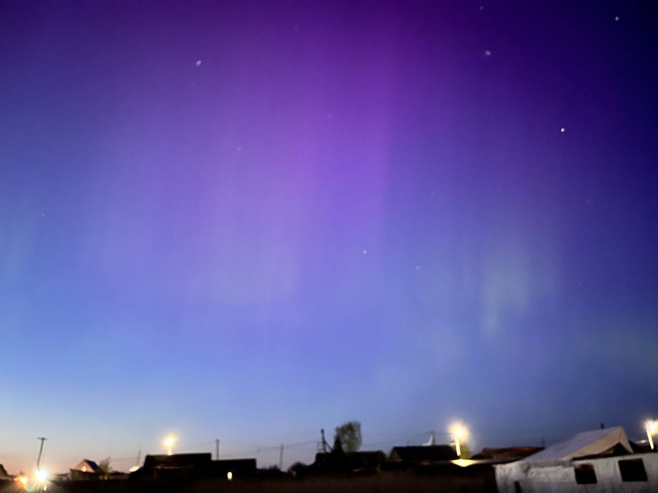 ❗️Северное сияние второй вечер подряд над небом в России: жители публикуют кадры из Алтайского края, Новосибирска, Омской и Тюменской областей.