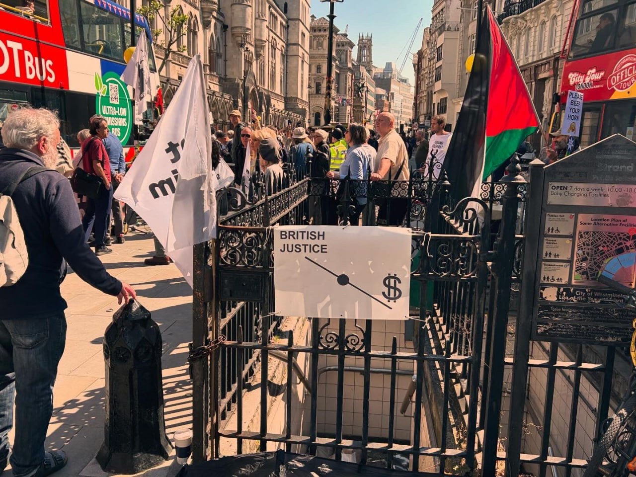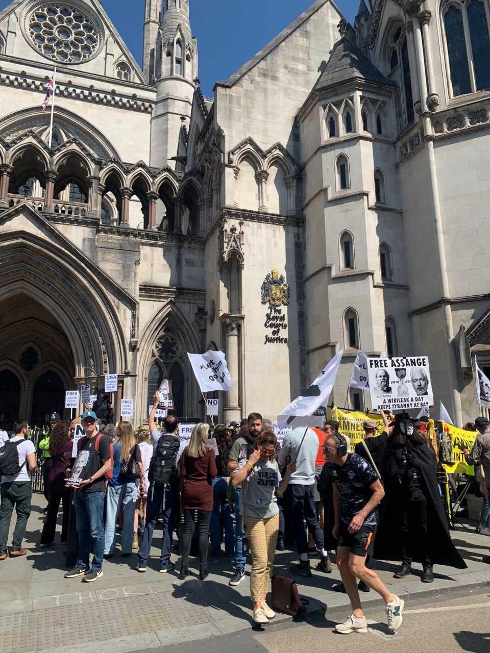 Акция в поддержку Джулиана Ассанжа проходит у здания Высокого суда в Лондоне, который в понедельник может принять решение по поводу возможной экстрадиции журналиста в США.