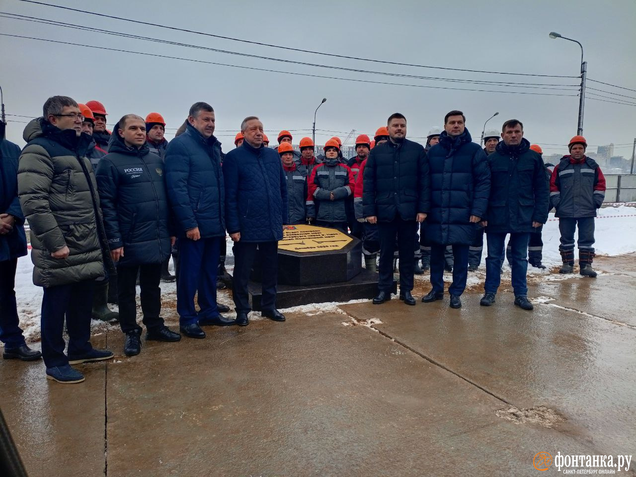 В Петербурге на Октябрьской набережной состоялась церемония торжественного открытия закладного камня Большого Смоленского моста через Неву, передает корреспондент «Фонтанки» 24 декабря.