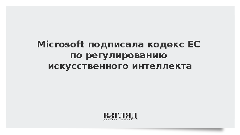 Microsoft объявила о подписании свода правил ЕС по искусственному интеллекту, сообщает Euractiv.