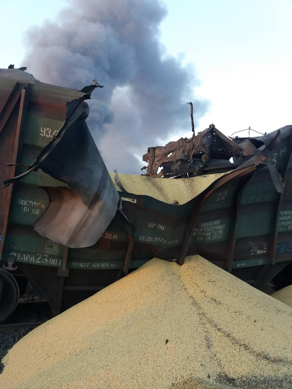 В Киеве в результате ночной атаки сильные повреждения получил ЖД состав. В одном из вагонов находилось зерно, что в других — неизвестно.