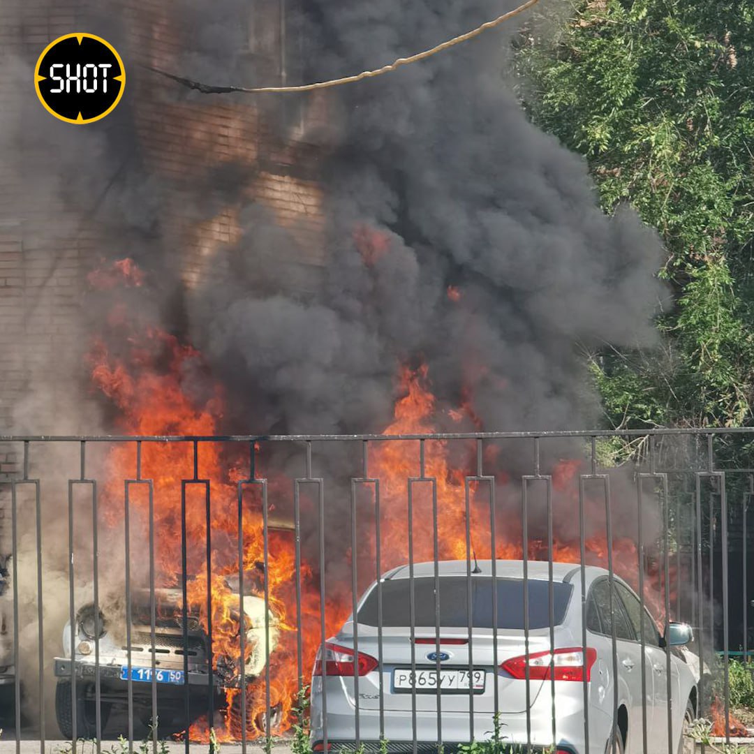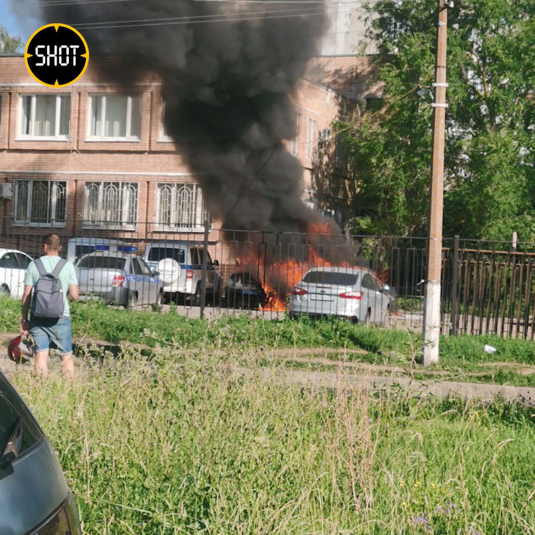 По данным SHOT, в минувшую пятницу днём мужчина в чёрном пробрался на полицейскую парковку в Коломне, поджёг служебный "форд", после чего скрылся. Машина взорвалась, огонь перекинулся на две соседние. В итоге "форд" и уазик "Хантер" выгорели полностью, а "патриот" частично обгорел. Никто не пострадал.