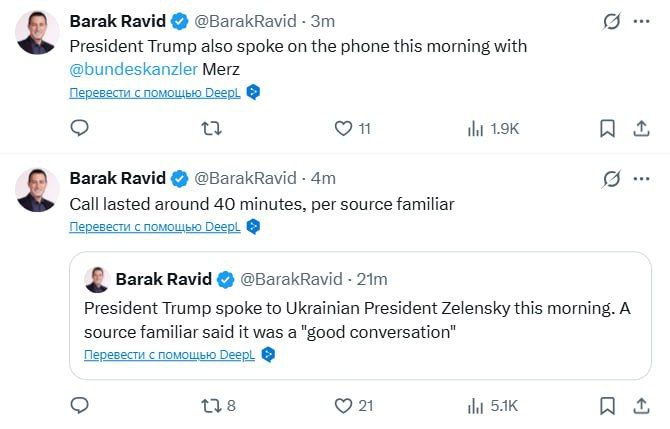 Согласно данным журналиста Барака Равида из Axios, подтверждённым источниками в администрации США: