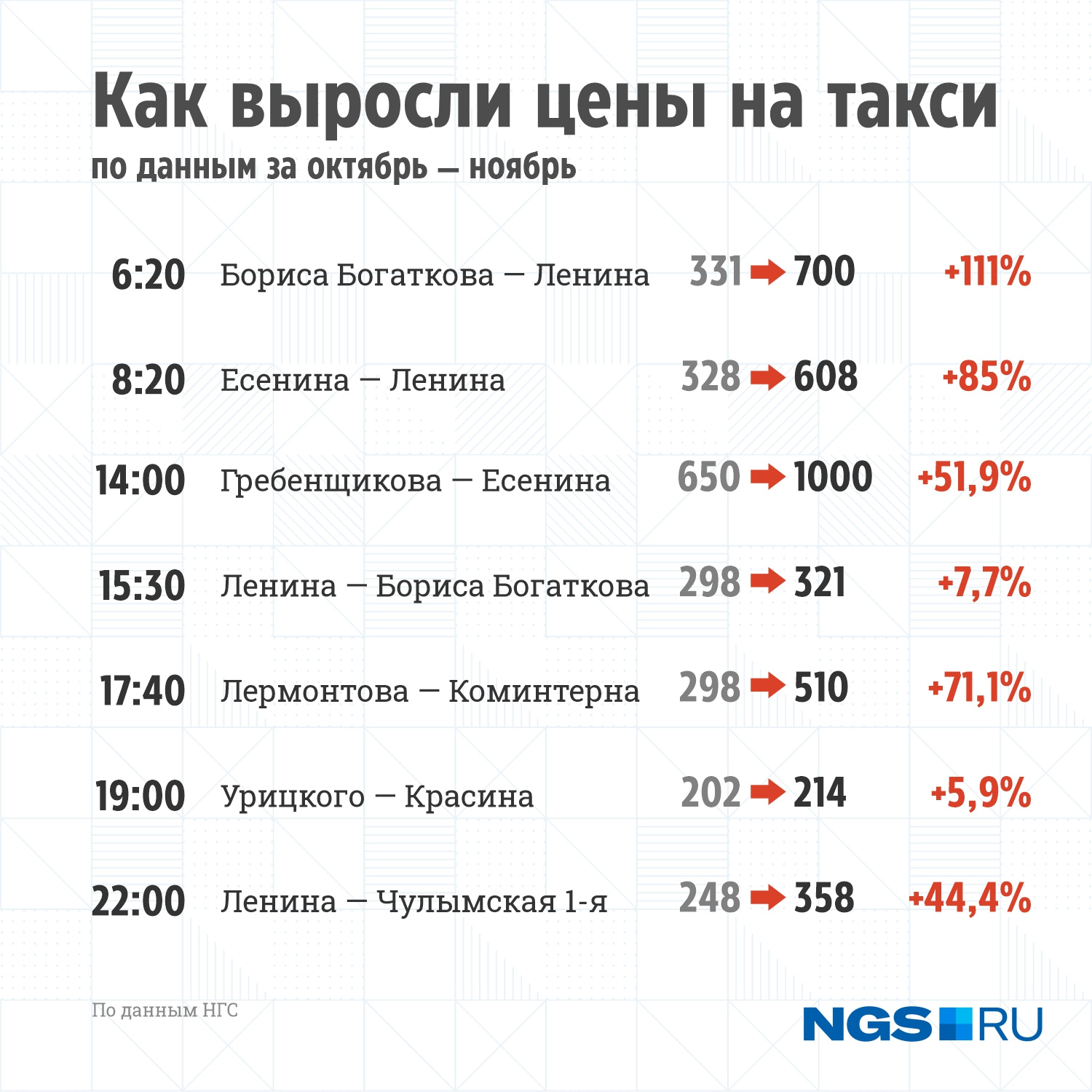 Осенью цены на такси в Новосибирске сильно выросли. С 1 сентября начал действовать новый закон о такси, а за год серьезно подорожали топливо, запчасти, новые машины — всё, что закладывается в цену поездки. Из-за нового закона, по данным сервиса «Максим», отрасль в среднем по регионам потеряла от 20% до 30% водителей, потому что перевозчики не получили необходимые разрешения.
