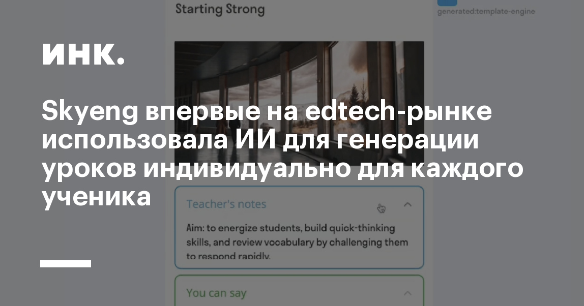 Онлайн-школа английского языка Skyeng впервые на российском edtech-рынке запустила автогенерацию интерактивного контента урока с помощью искусственного интеллекта. В компании отмечают, что технология опирается на методологически выверенный стандарт. Подробности — в распоряжении редакции «Инк.».