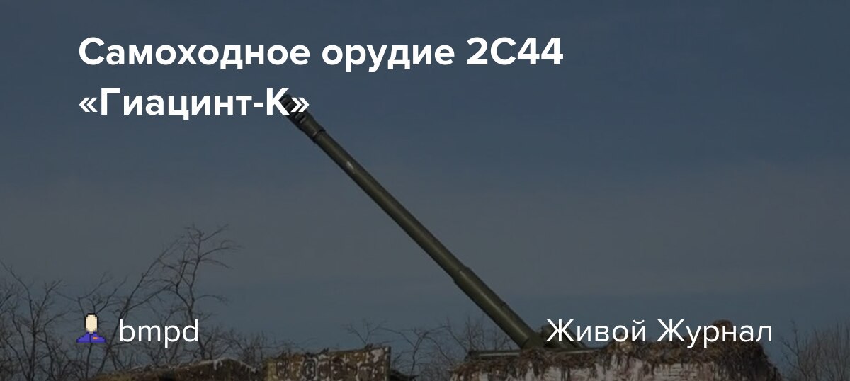 По известным данным, данные системы 2С44 «Гиацинт-К» представляют собой новый вариант самоходного орудия 2С43 «Мальва» на колёсном шасси БАЗ-6910-027 «Вощина» (8×8), с установкой качающейся части 152-мм/50 буксируемой пушки 2А36 «Гиацинт-Б». Разработанное АО «Центральный научно-исследовательский институт «Буревестник» (Нижний Новгород, в составе АО «Научно-производственная корпорация «Уралвагонзавод») и находящееся в малосерийном производстве с 2023 года самоходное орудие 2С43 «Мальва» штатно оснащается 152-мм/47 качающейся частью 2А64 самоходной гаубицы 2С19 «Мста-С». На практике орудие 2А64 с объемом зарядной камеры 16 литров является уже заведомо устаревшим и по своим баллистическим характеристикам соответствует лишь западным 155-мм/39 гаубицам (максимальная дальность стрельбы обычным снарядом около 24 км). В результате, как и следовало ожидать, выявилась неспособность 2С43 «Мальва» соответствовать по дальности широко используемым сейчас вооруженными силами Украины современным западным 155-мм/52 гаубицам, выполненным в соответствии с Баллистическим меморандумом НАТО (NATO Joint Ballistics Memorandum of Understanding - JBMoU), имеющим объем зарядной каморы 23-25 литров, и за счет этого достигающим максимальной дальности стрельбы обычным снарядом 30-32 км.