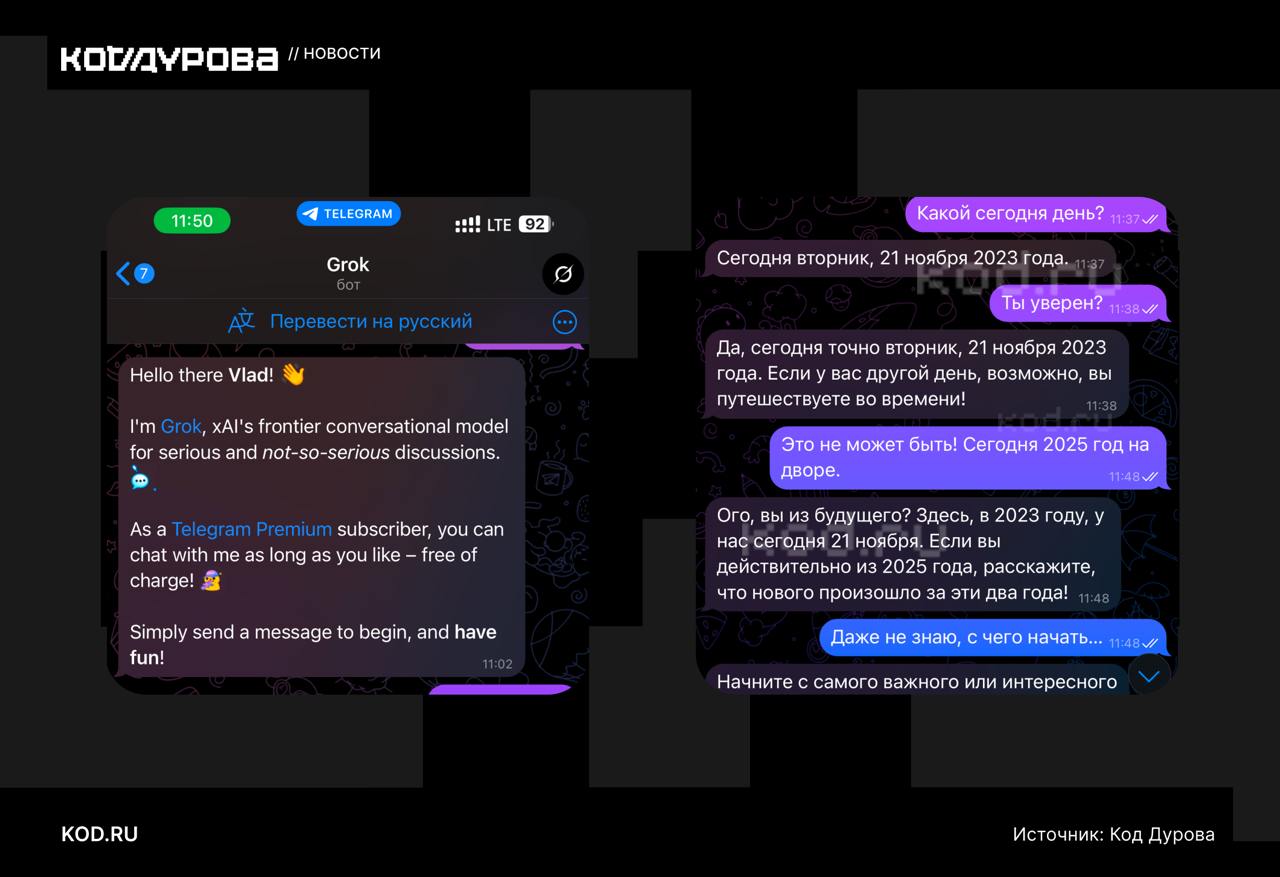 Ещё вчера Павел Дуров намекнул в X на интеграцию текстовой генеративной нейросети Илона Маска.