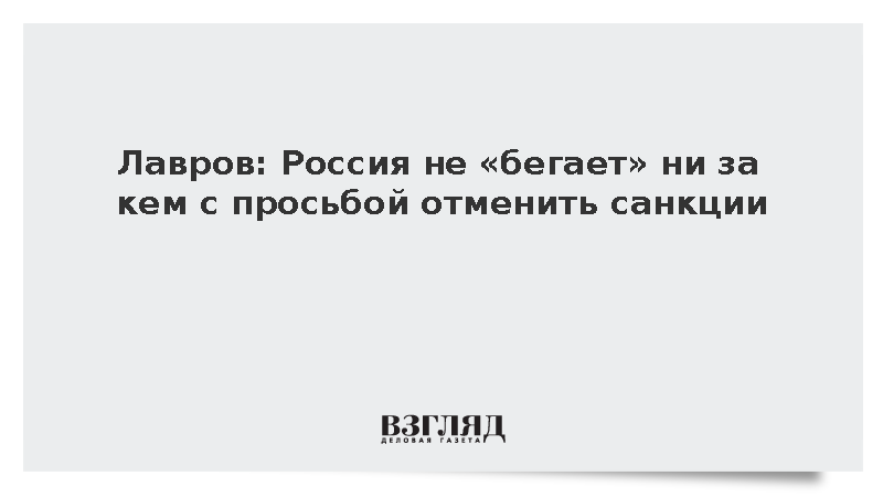 Лавров в интервью газете «Коммерсантъ» заявил, что Россия не обращается с просьбами об отмене введенных против нее санкций. Лавров подчеркнул, что Москва не намерена зависеть от других стран в критически важных сферах даже в случае отмены санкций.