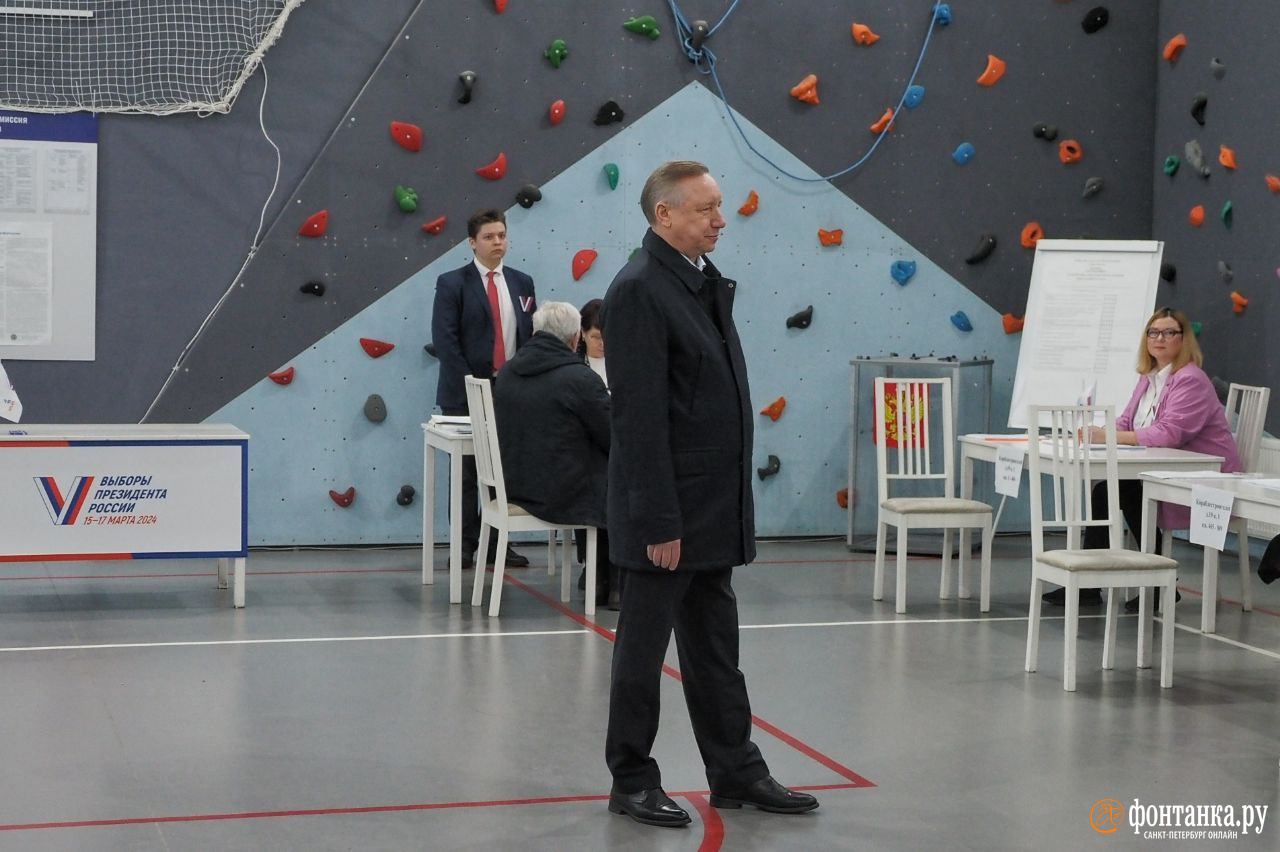 Губернатор Петербурга Александр Беглов принял участие в выборах президента. Глава города пришел отдать свой голос утром 15 марта в школу на Кораблестроителей, 21, корпус 3, сообщает корреспондент «Фонтанки».