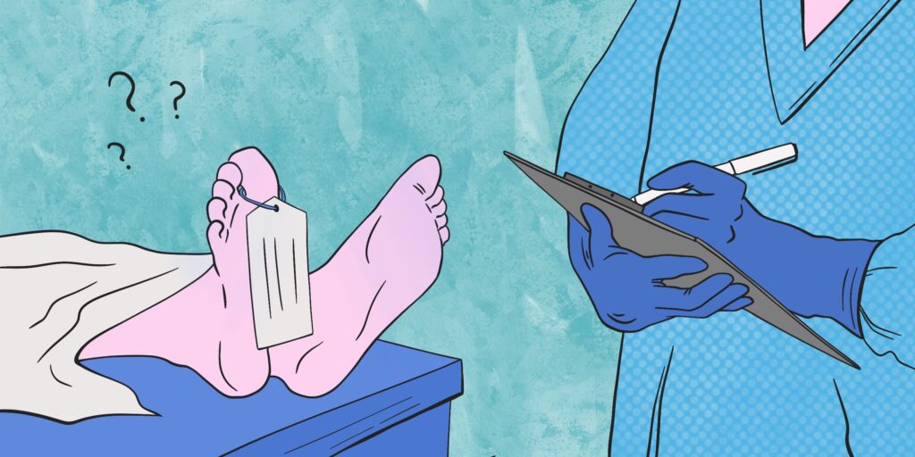 После вскрытия патологоанатомы изучают мозг и изымают и разрезают все органы, чтобы отправить по кусочку ткани на обследование. В этом случае человек уже не может быть жив.