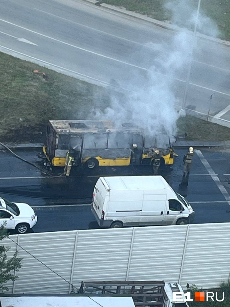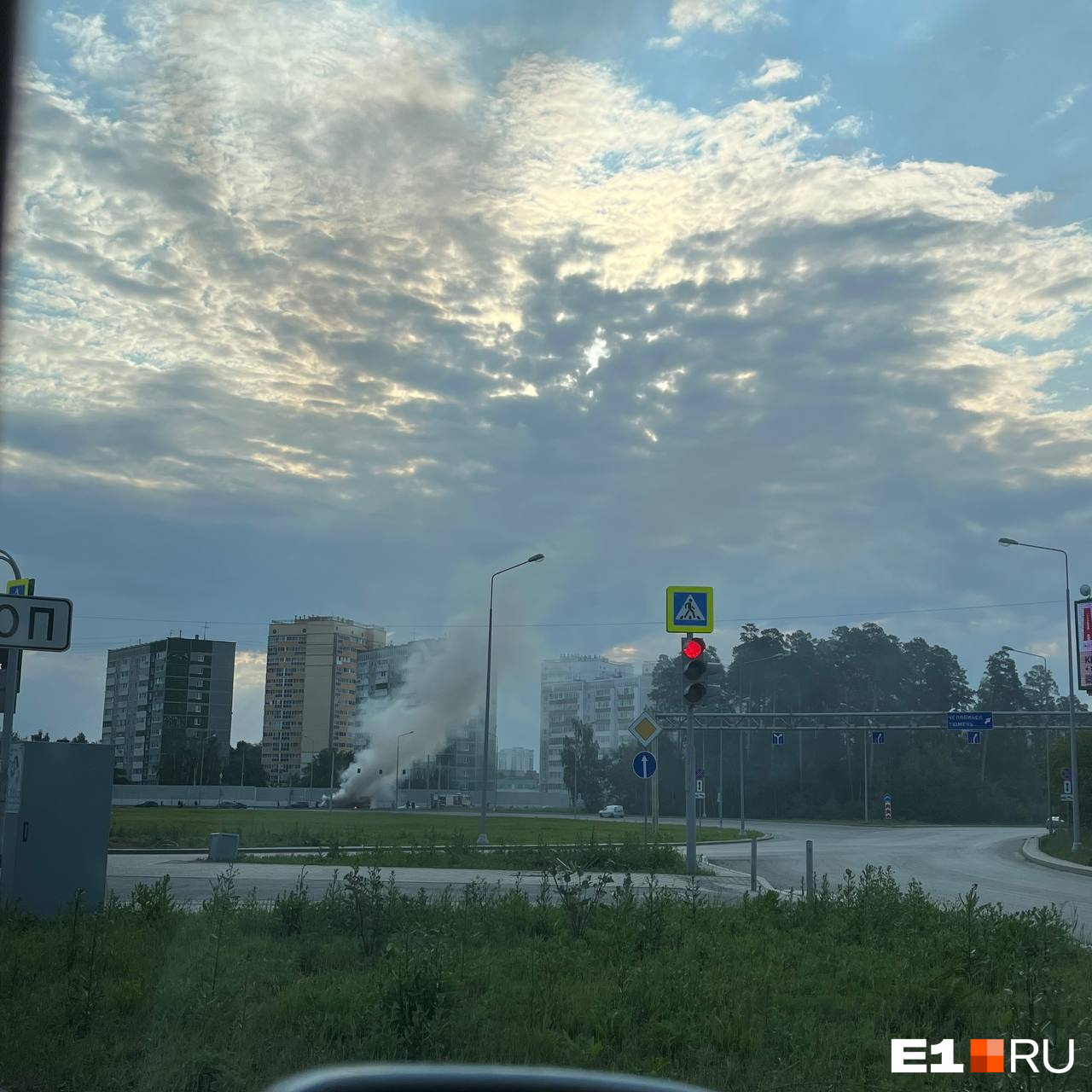 Сегодня утром на выезде из Академического вспыхнул автобус. Об этом E1.RU сообщили сразу несколько очевидцев. ЧП случилось на кольце Серафимы Дерябиной.