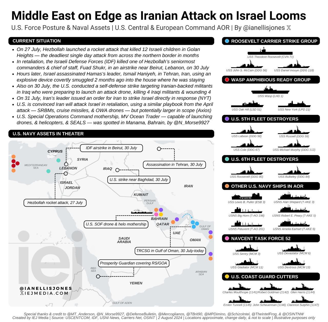 ВМС США развернули значительные силы в регионе Ближнего Востока в ожидании иранского удара по Израилю.