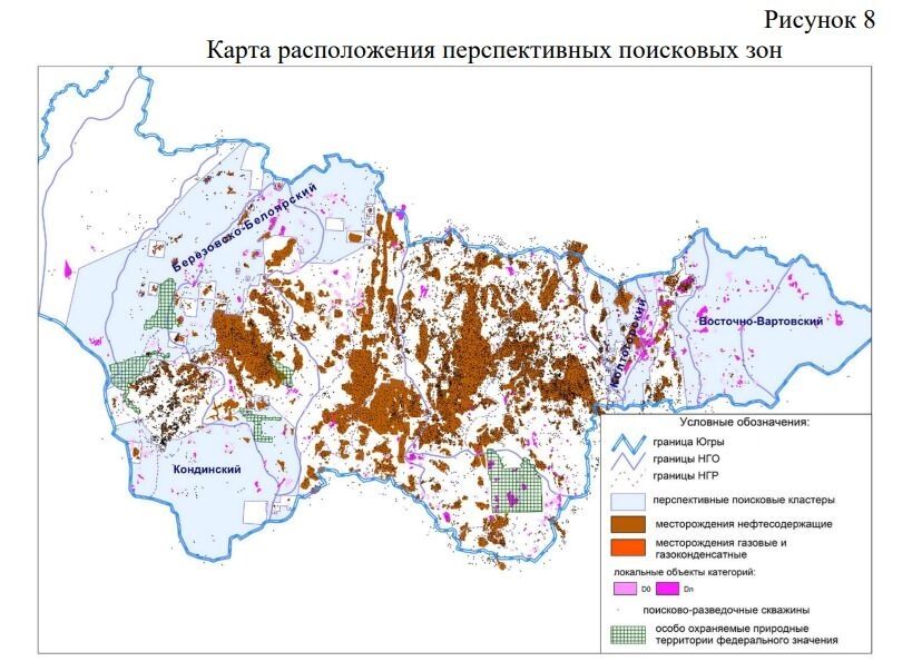 «Приоритетными являются: выделение 4 перспективных поисковых кластеров, характеризующихся низкой степенью геологической изученности (освоенности ресурсов): Березовско-Белоярский, Кондинский, Колтогорский и Восточно-Вартовский», — говорится документе.