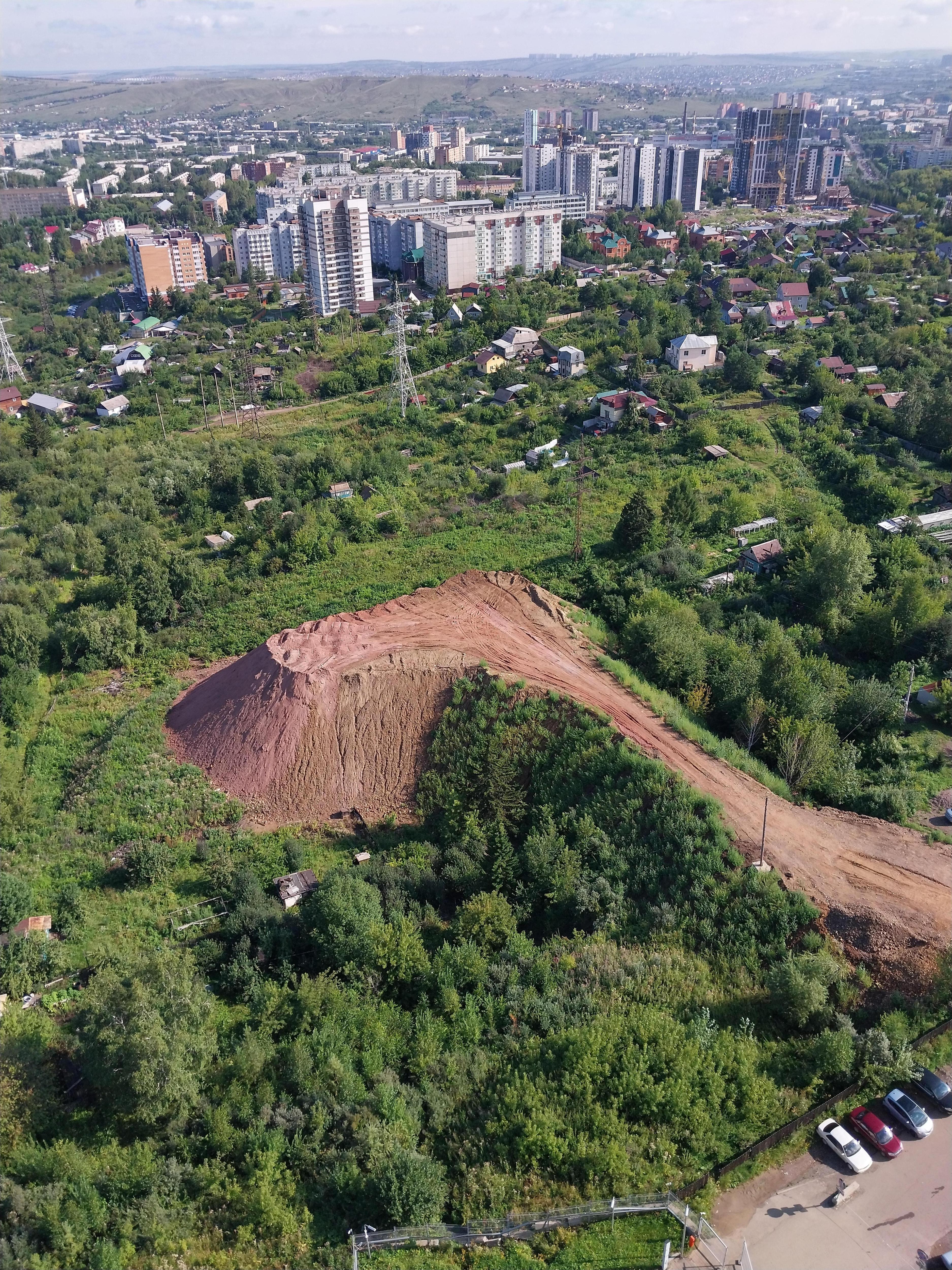 Насыпь начала расти этой весной на территории СНТ «Сад 1 Локомотивного депо», рядом с кампусом СФУ. Большинство участков в этом СНТ скупил строительный холдинг «Сибиряк».