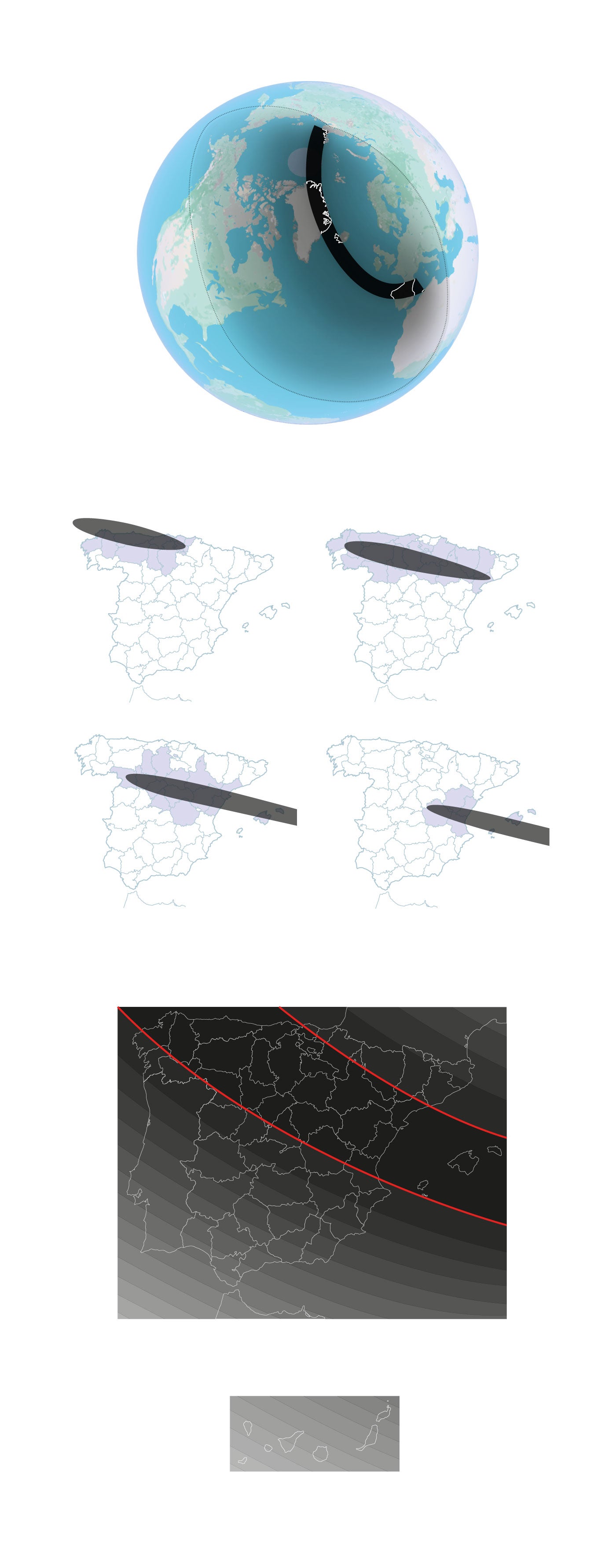 En su recorrido por la Península, el eclipse viajará desde el norte, en una franja de totalidad muy amplia, con un ancho calculado en 290 kilómetros, atravesará Castilla y León, Aragón y se esfumará por Castellón y Mallorca. El Sol se esconderá hacia las 21.16 horas. En esa travesía hay un lugar codiciado para la observación, avalado, además, por varias certificaciones starlight, esa que distingue la calidad del cielo, explica Stylianos Pyrzas, coordinador científico de Cefca en Galáctica. Para la provincia de Teruel, el acontecimiento es único y un desafío en toda su extensión.