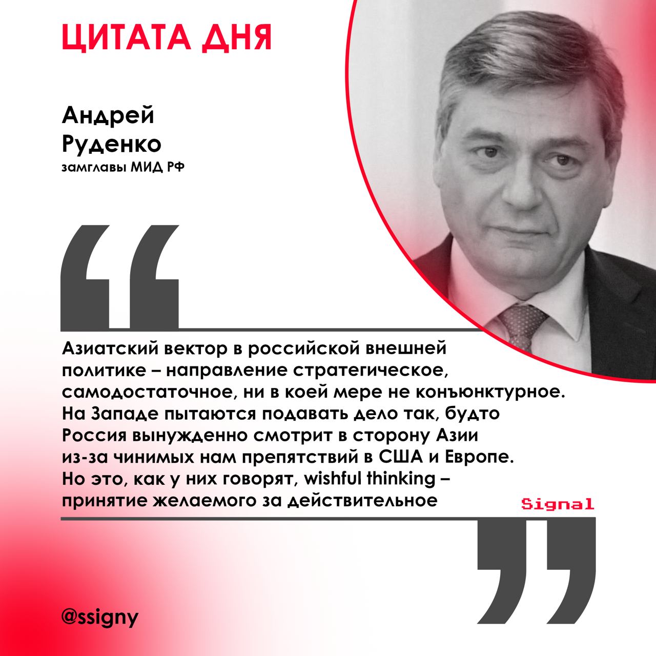 Россия смотрит в сторону Азии не вынужденно, как пытаются представить Соединенные Штаты, а рассматривает это направление в своей политике как стратегическое и самодостаточное. Об этом заявил в интервью ТАСС замглавы МИД РФ Андрей Руденко. По словам Руденко, интерес России к региону объективен, равно как и стремление азиатских партнеров к сотрудничеству с РФ. Поэтому, отметил замминистра, отношения между РФ и азиатскими странами стабильно и устойчиво укрепляются, динамика взаимодействия нарастает, повестка дня расширяется.