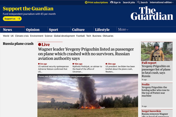 «Шансов на обычную авиакатастрофу нет»: мировые СМИ о самолете Пригожина