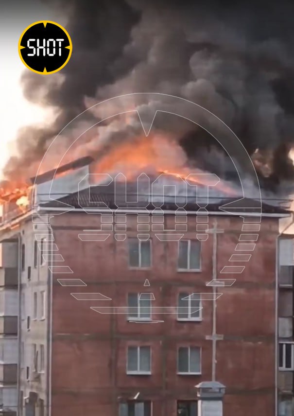 Очевидцы заявили SHOT, что около 30–40 минут назад в небе над городом послышалась серия громких взрывов. Предварительно, один из снарядов попал в квартиру многоэтажки, после чего начался сильный пожар. Столб дыма виден за несколько километров. На месте работают экстренные службы. Информация о погибших и пострадавших не поступала.