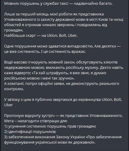 ΠΡΠΈΡ ΡΠΏΠΎΠ»Π½ΠΎΠΌΠΎΡΠ΅Π½Π½ΠΎΠ³ΠΎ ΠΏΠΎ Π·Π°ΡΠΈΡΠ΅ Π³ΠΎΡΡΠ·ΡΠΊΠ° ΠΎΠ±ΡΡΠ²ΠΈΠ»: Π²ΠΎΠ΄ΠΈΡΠ΅Π»ΠΈ ΠΎΠ±ΡΠ·Π°Π½Ρ ΠΎΠ±ΡΠ»ΡΠΆΠΈΠ²Π°ΡΡ ΠΊΠ»ΠΈΠ΅Π½ΡΠΎΠ² Π½Π° ΡΠΊΡΠ°ΠΈΠ½ΡΠΊΠΎΠΌ, Π° ΡΠ΅ΡΠ²ΠΈΡΡ β ΠΎΡΡΠΈΡΡΠ²Π°ΡΡΡΡ ΠΎ Π½Π°ΡΡΡΠ΅Π½ΠΈΡΡ (ΡΡΡΡΠΊΠ°Ρ ΡΠ΅ΡΡ, ΠΌΡΠ·ΡΠΊΠ° Π½Π° ΡΡΡΡΠΊΠΎΠΌ).