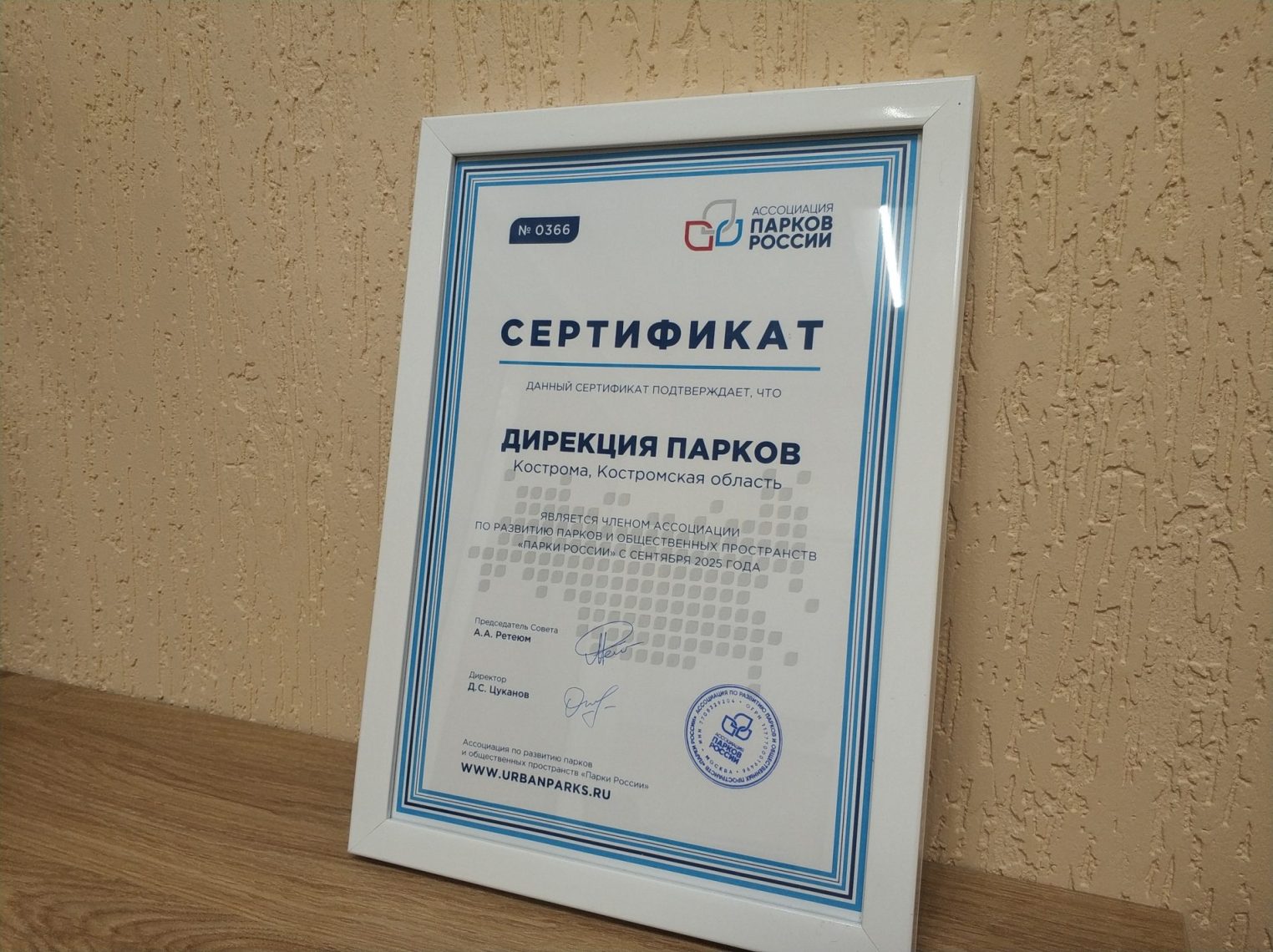 Сертификат члена организации Дирекции парков Костромы торжественно вручили 3 октября на выставке «ParkSeason Expo» в «Тимирязев-центре» в Москве.