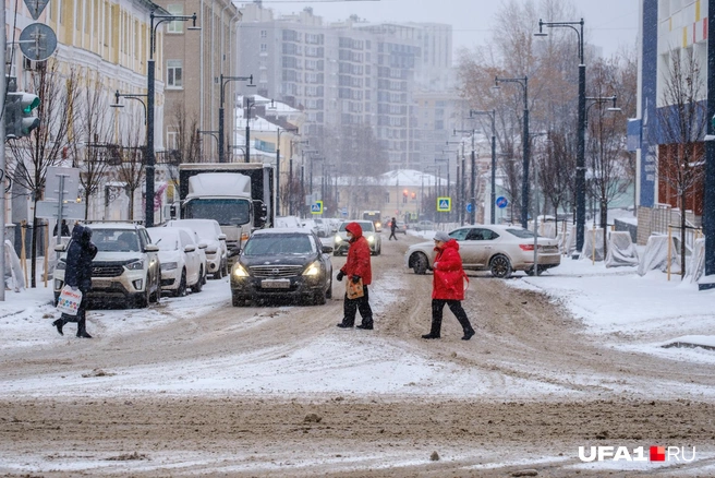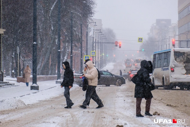 Ну а обычным уфимцам от этого не очень-то и радостно. Красиво, конечно, но только со стороны, гулять в такую погоду тяжело. Снег липнет к ногам, обувь мокнет практически сразу, а войдя в помещение нужно еще и оттряхиваться несколько минут.