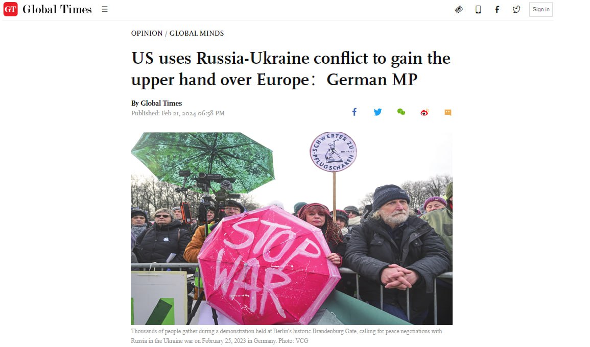 Ещё в самом начале конфликта в Украине глава МИД Германии Анналена Бербок заявила, что цель Запада — «разрушить Россию» посредством экономических санкций и прокси-войны. И это очень похоже на правду, особенно сейчас, когда прошло уже два года, отметила депутат. Между тем политическая поддержка среди рядовых европейцев падает, а социальные издержки поставок оружия Украине и чрезмерного наращивания арсеналов продолжают расти.