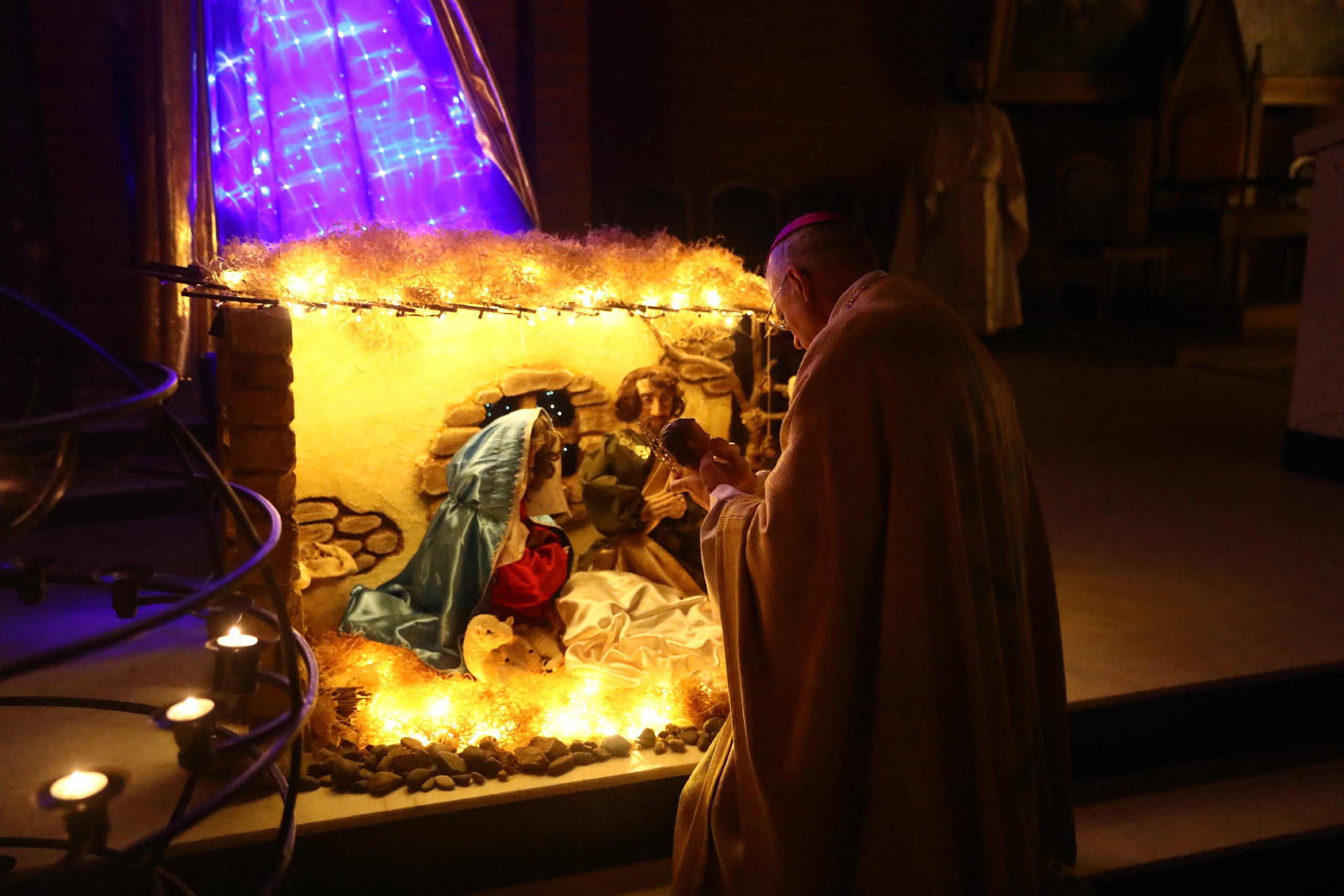 В католических храмах и часовнях России устанавливают вертепы с яслями, в которые помещают фигуры младенца Иисуса