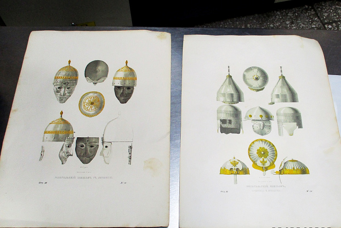 Сотрудники таможенного поста МАПП Кяхта обнаружили культурную ценность во время таможенного контроля на пассажирском направлении. Мужчина выезжал из России в Монголию на личном автомобиле, и при опросе заявил об отсутствии товаров, подлежащих декларированию. Но при осмотре багажа таможенники обнаружили пакет с двумя бумажными листами размером 39 на 53 см с изображением шлемов в различных проекциях и надписью: «Хромолитографiя Ф. Дрегора». Разрешительных документов на перемещение данной категории товаров у мужчины не было.