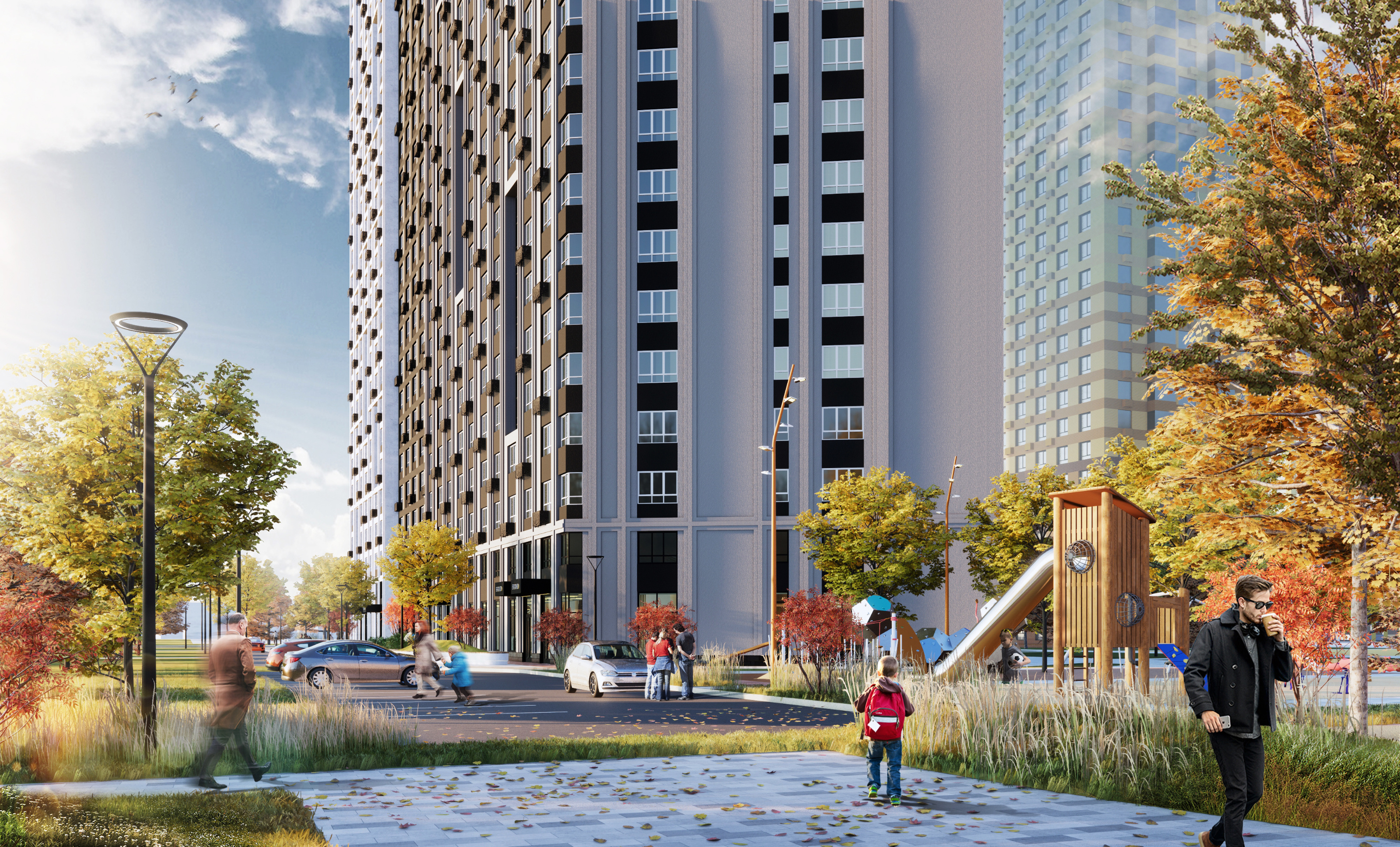 Во дворе оборудуют детскую площадку и спортплощадку. Также построят подземный паркинг на 163 места, а сверху будет наземный гостевой — на 26 мест. Люди, собирающиеся жить здесь или в соседних ЖК (рядом, на Космонавтов, 7, строит «Ривьера», а на Космонавтов, 11 — «Пик». — Прим. ред.), уверены, что этого недостаточно.