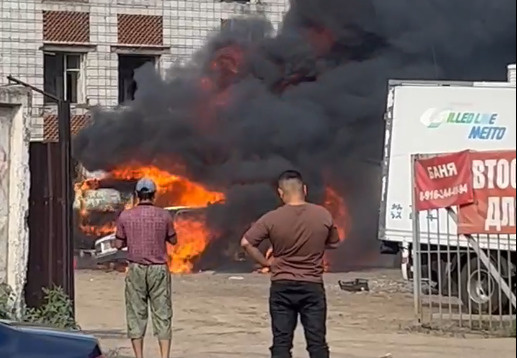 На стоянке в районе Хилка выгорели фура и ВАЗ — фото того, что от них осталось