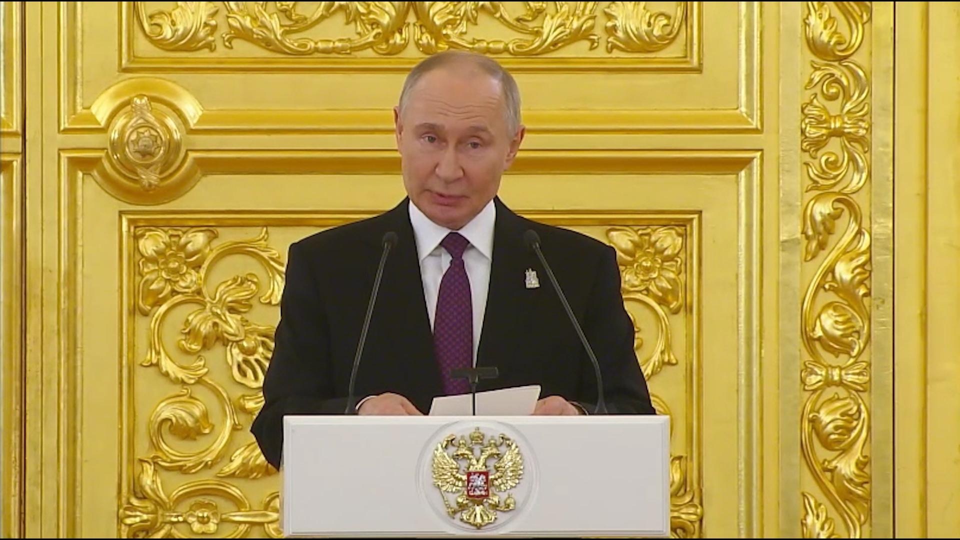 Президент России Владимир Путин выступил в Кремле перед главами иностранных делегаций, прибывших в Москву на мероприятия в честь Дня Победы, сообщает пресс-служба Кремля.