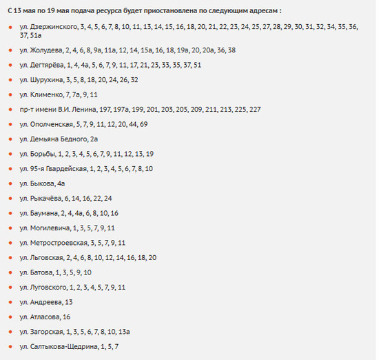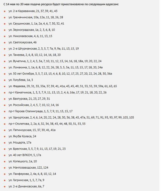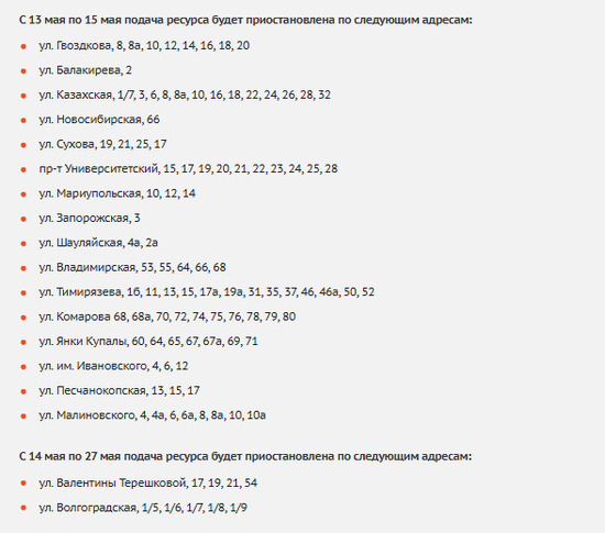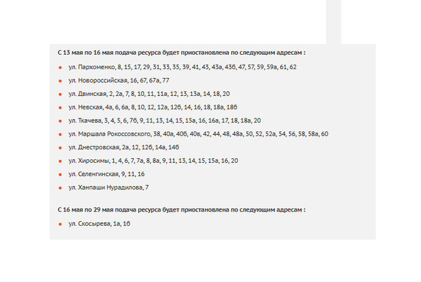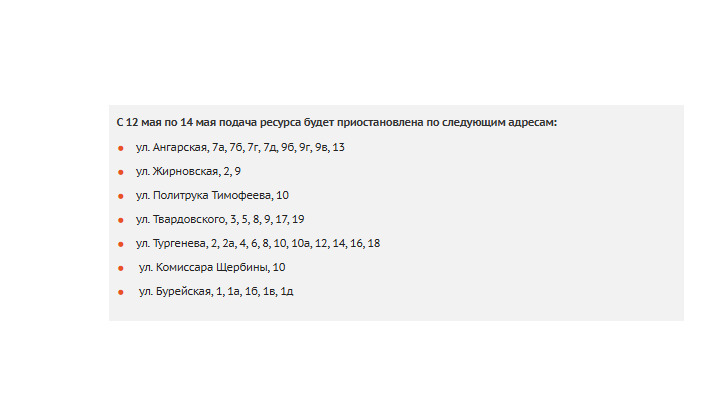 В домах № 10а, 18 на ул. Курчатова ресурса не будет с 15 по 26 мая.