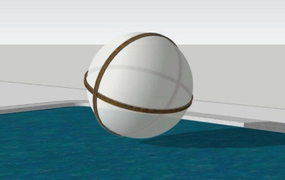 В верхней части фонтана установят шар из прозрачного стекловолокна с металлическими обручами.