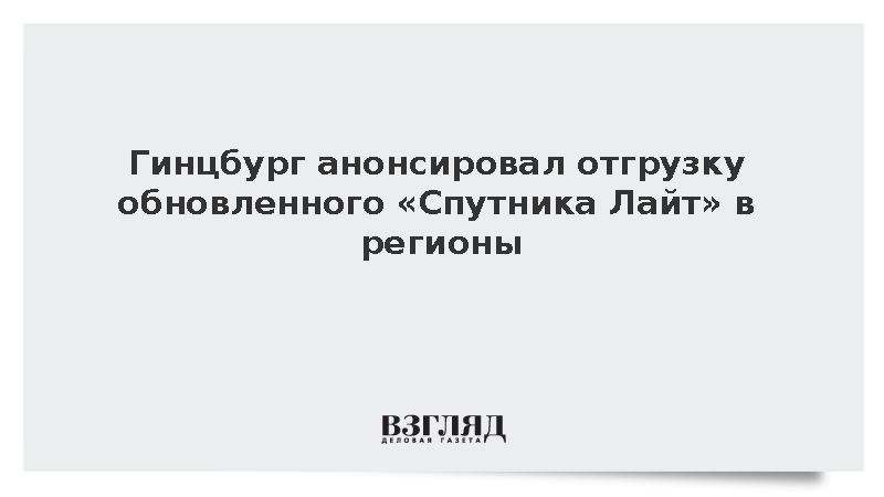 Гинцбург анонсировал отгрузку обновленного «Спутника Лайт» в регионы
