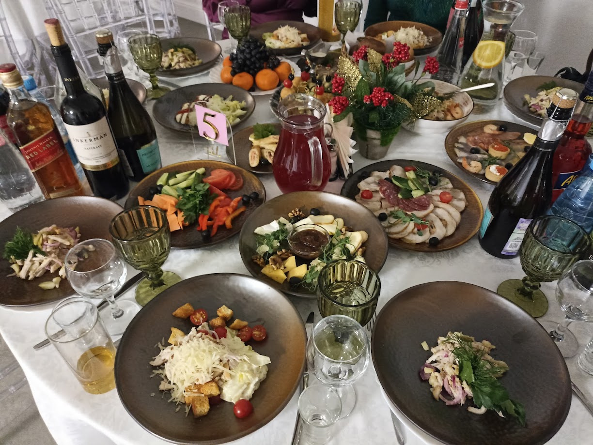 В качестве закусок можно подать луковые кольца в кляре, холодец, колбасно-сырную нарезку или бутерброды с салом и маринованными огурцами. Здесь всё зависит от вдохновения и желания хозяйки.