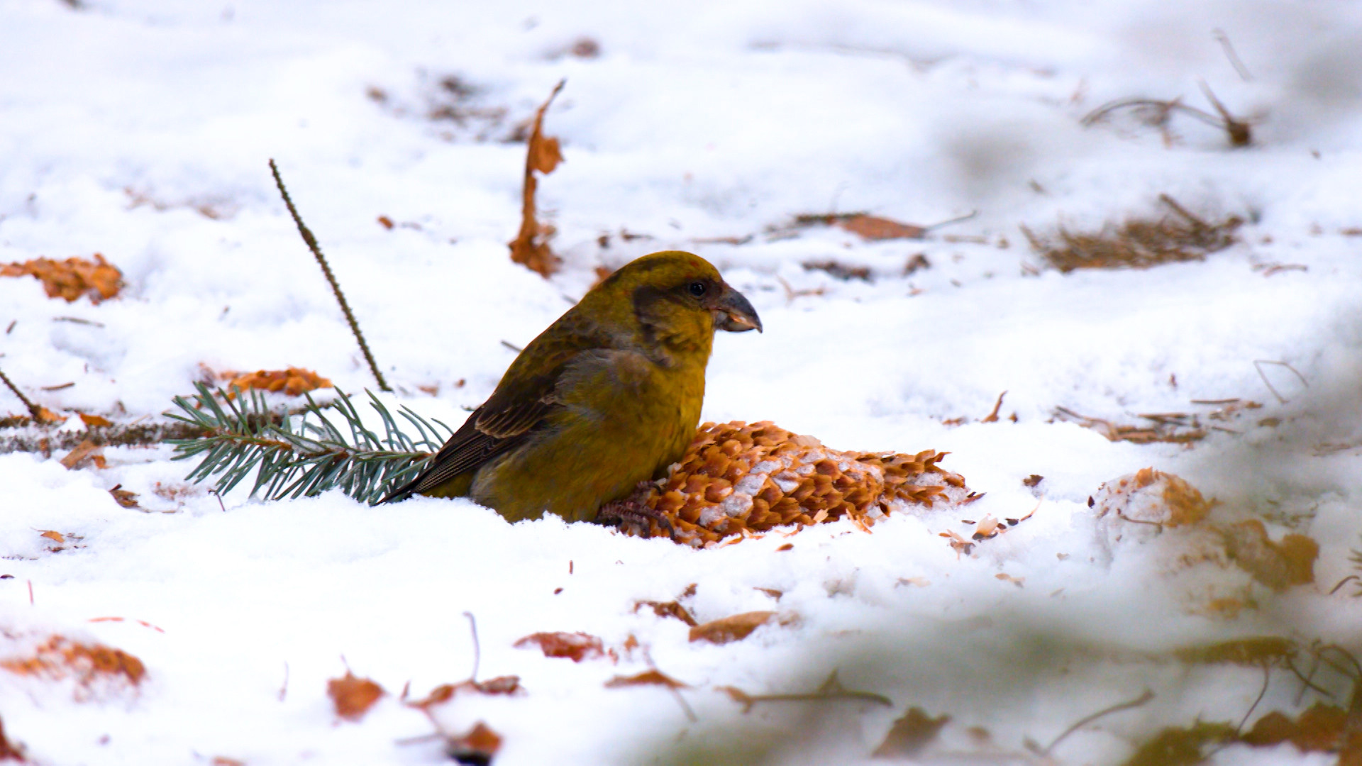 Самца от самки легко отличить по цвету. Самцы красно-малиновые, а самки — зеленовато-желтые. У клеста очень необычный клюв. Его верхний и нижний кончики перекрещиваются. Ими птица раздвигает чешуйки шишки, а затем ловко достает семена. Помимо этого, клюв помогает клесту передвигаться по дереву. Птица использует его как третью лапу, цепляясь за ветки. Подобный способ передвижения использует и хорошо знакомые нам домашние питомцы — попугаи. Своим острым клювом клест, словно ножницами, может срезать шишку, чтобы полакомиться семенами в укромном месте», — рассказал биолог Павел Глазков.