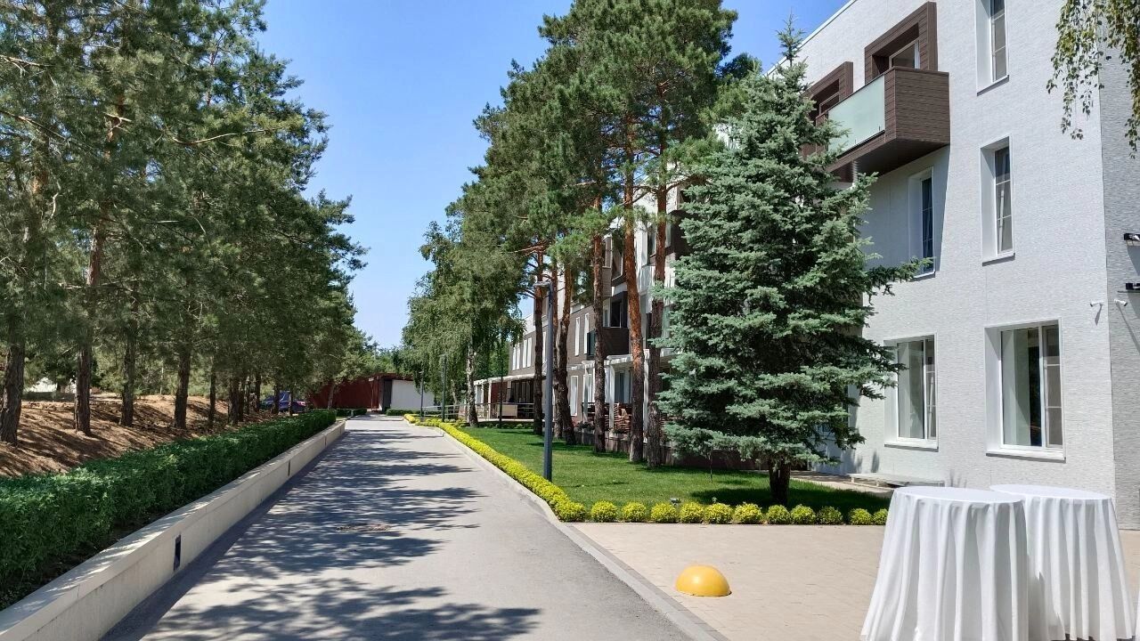 Парк-отель «Наша хвоя» расположен в Кировском районе Волгограда, в 20 минутах пути от центра города. На территории имеется большой открытый бассейн. Отдохнуть у воды могут как постояльцы парк-отеля, так и просто гости. Если вы относитесь ко второй категории, то за отдых у воды придется заплатить кругленькую сумму. Шезлонги с зонтиками и бунгало можно арендовать за отдельную стоимость.