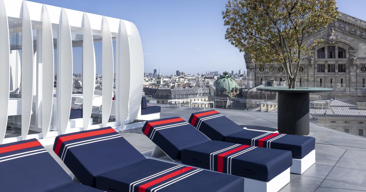 Après son escale remarquée au Palais de Tokyo l’été dernier pendant les JO, Air France s’installe tout l’été sur le toit des Galeries Lafayette (9) avec une terrasse éphémère exclusive. Dans un écrin élégant décliné aux couleurs de la compagnie – bleu profond, blanc lumineux, touches de rouge –, vingt couverts seulement sont disposés face à Paris. Deux services au déjeuner permettent de savourer, « comme en vol », un menu Business long-courrier signé par le chef trois étoiles Régis Marcon, avec desserts de la pâtissière Nina Métayer. Le tout est servi dans la vaisselle dessinée par Jean-Marie Massaud. Plateau repas chic, sélection de grands vins et champagnes par Xavier Thuizat, et salon extérieur avec transats pour prolonger le survol visuel de la capitale. Une expérience aérienne, feutrée, hors du tumulte urbain.