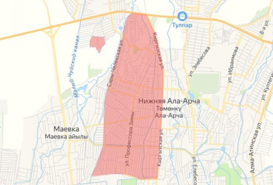Район отключения ограничен улицами: Киргизская – Саадаева – Бельская – Сары-Челекская – Бухарская – Киргизская.