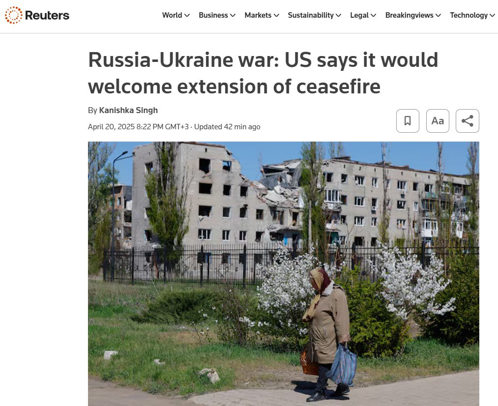 «Мы будем рады, если [перемирие] будет продолжаться и после воскресенья», – приводит сообщение ведомства Reuters.