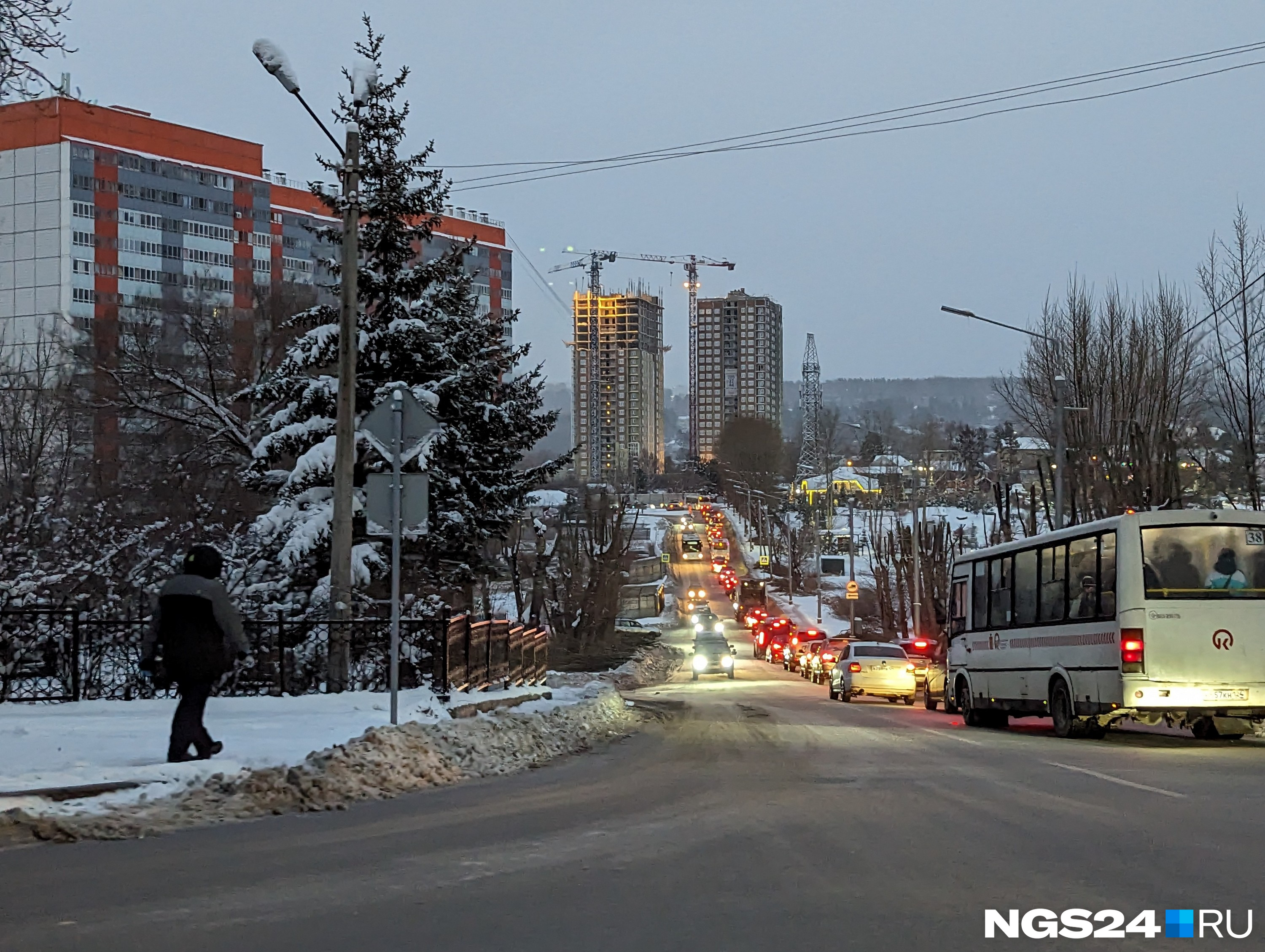 Фотокорреспондент NGS24.RU Мария Ленц докладывает, что в пробках стоят как минимум улица Лесопарковая