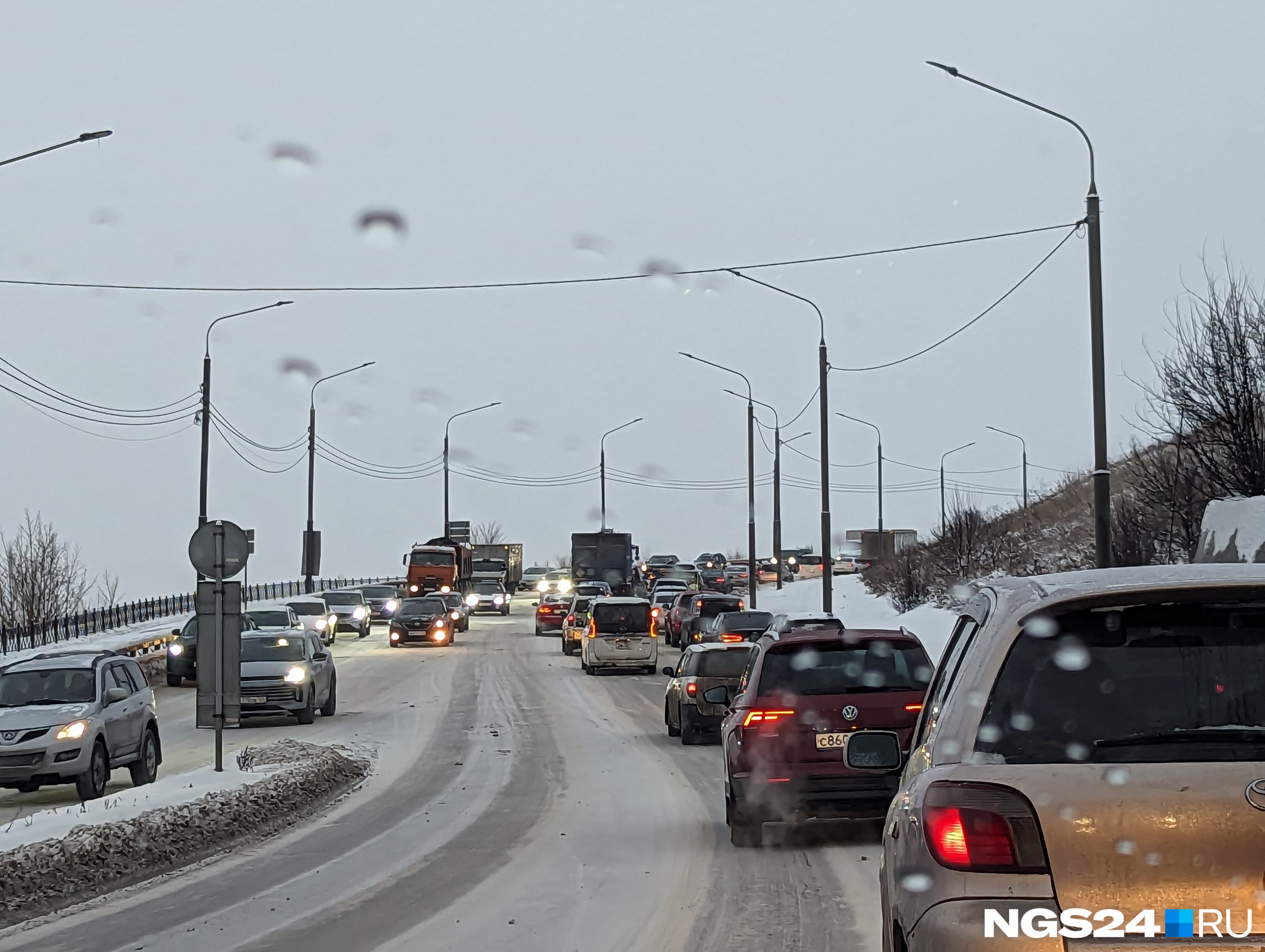 В первый день зимы в Красноярске пошел дождь. Показываем, что он уже натворил (не только поставил город в пробки)