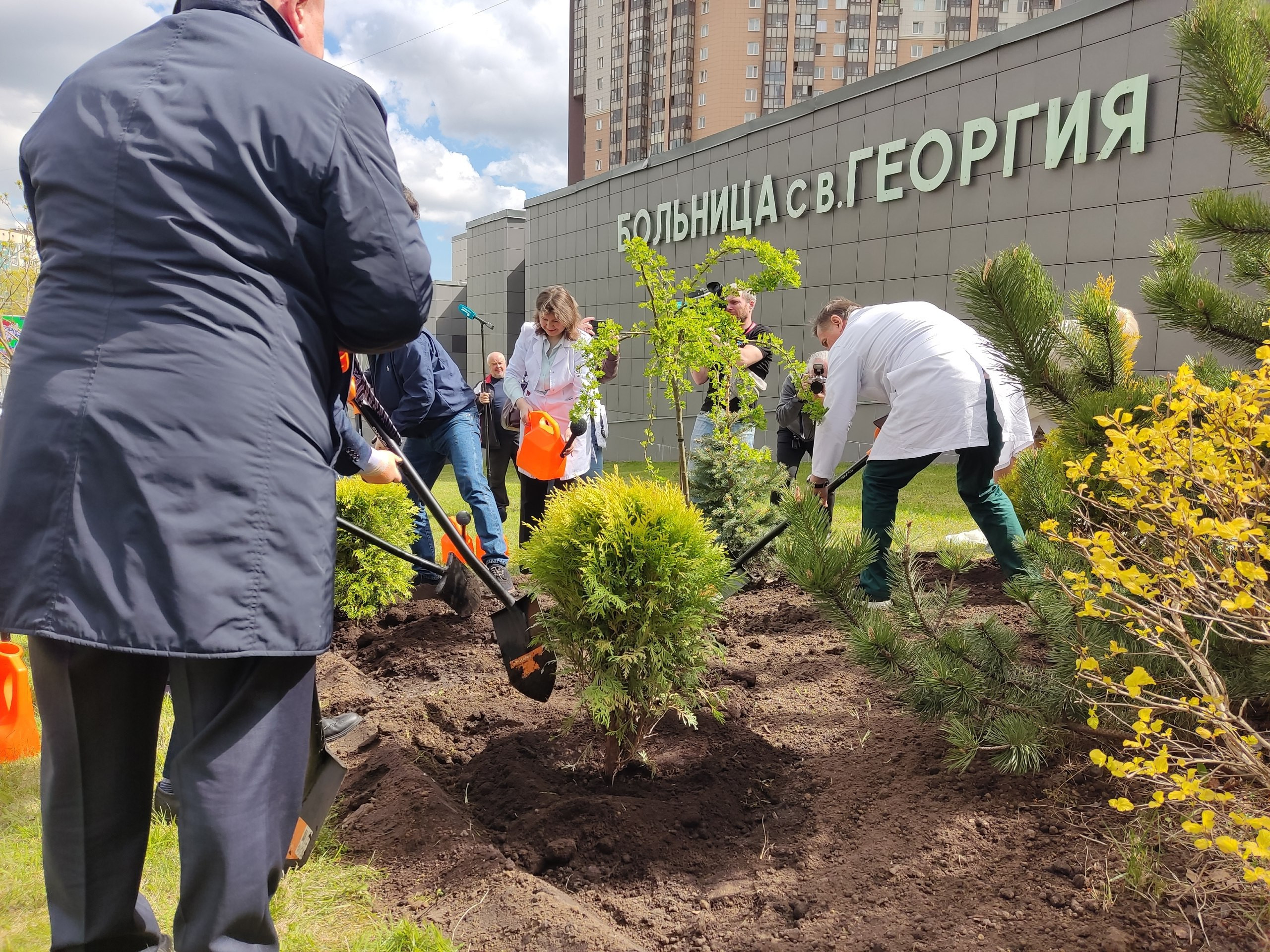 В Георгиевском саду больницы Святого Великомученика Георгия прошла традиционная акция по озеленению территории. В торжественной обстановке были высажены молодые деревья при участии председателя Попечительского совета учреждения Георгия Полтавченко и депутатов Законодательного Собрания Петербурга.