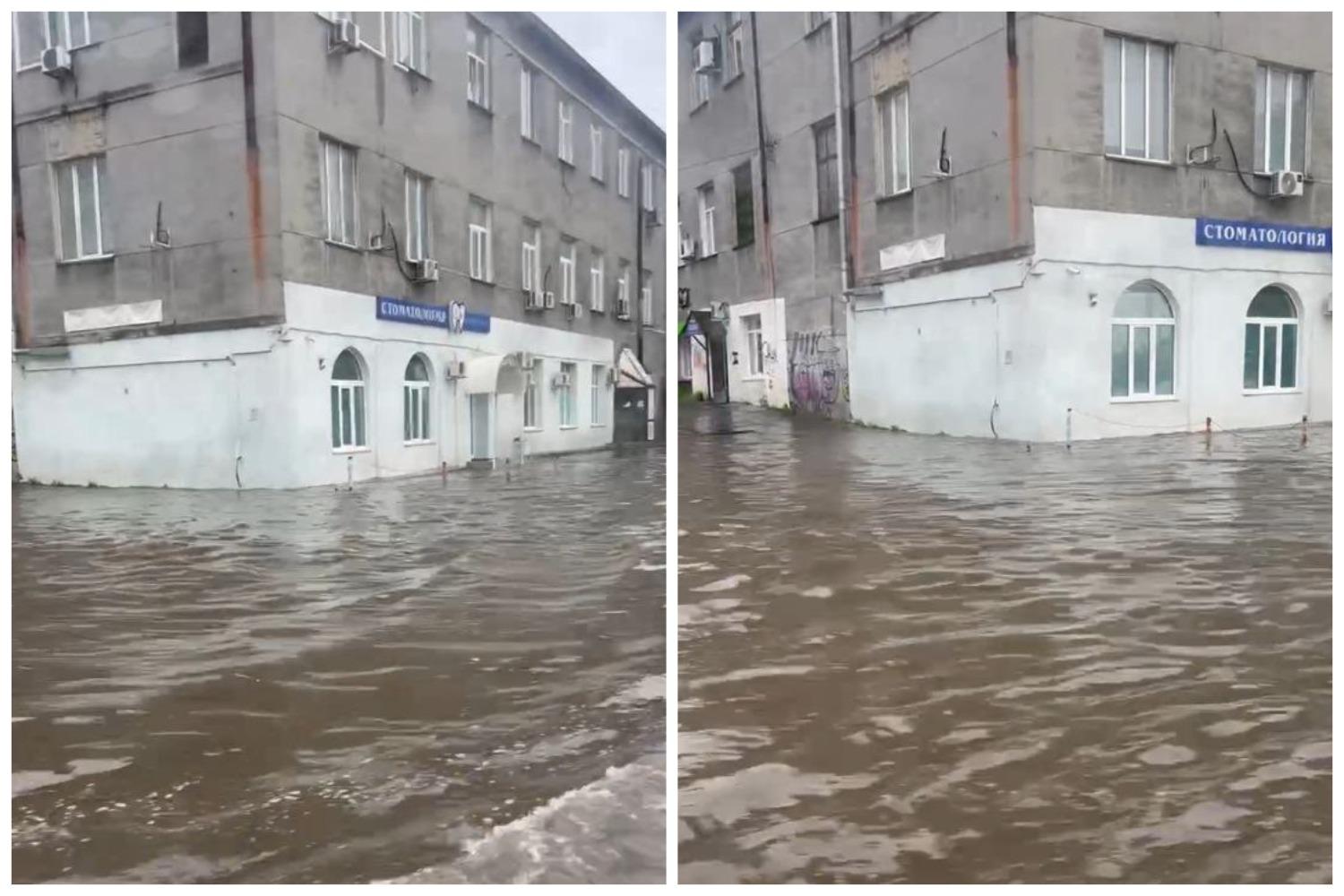 Дождь начался недавно, но уже затопил многие дороги. Особенно пострадал проезд Виктора Ващука. На видео видно, что дорога на улице оказалась практически полностью под водой.